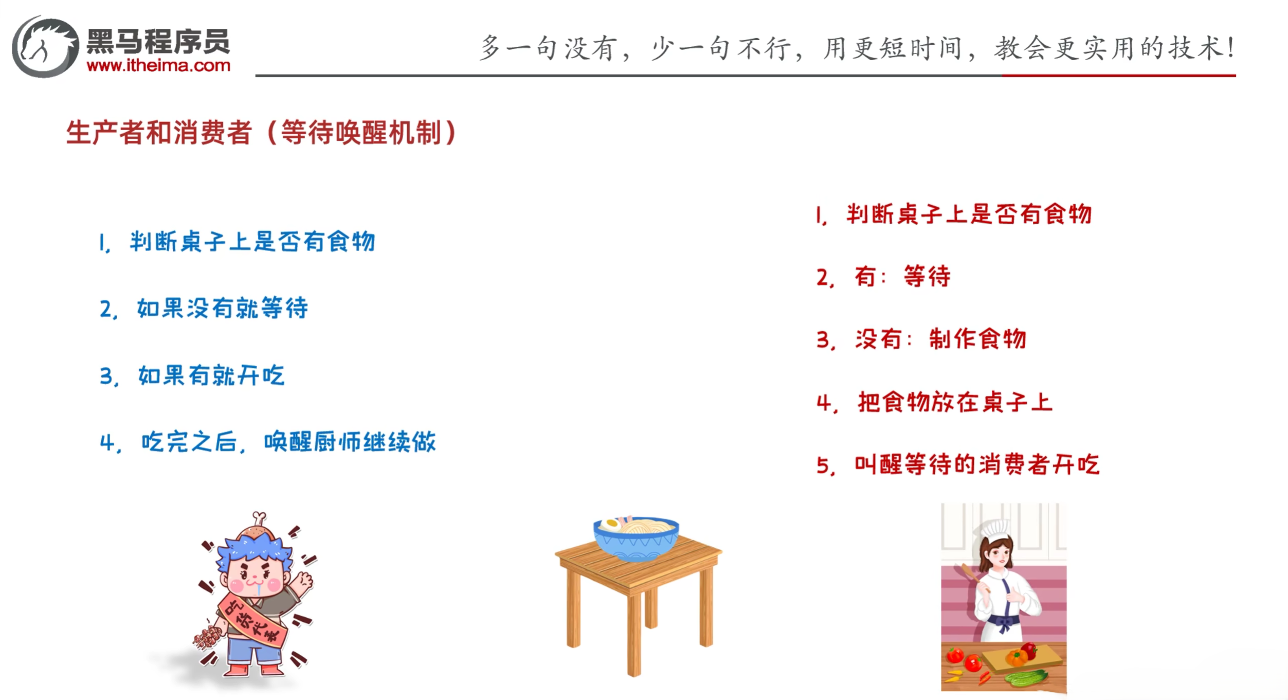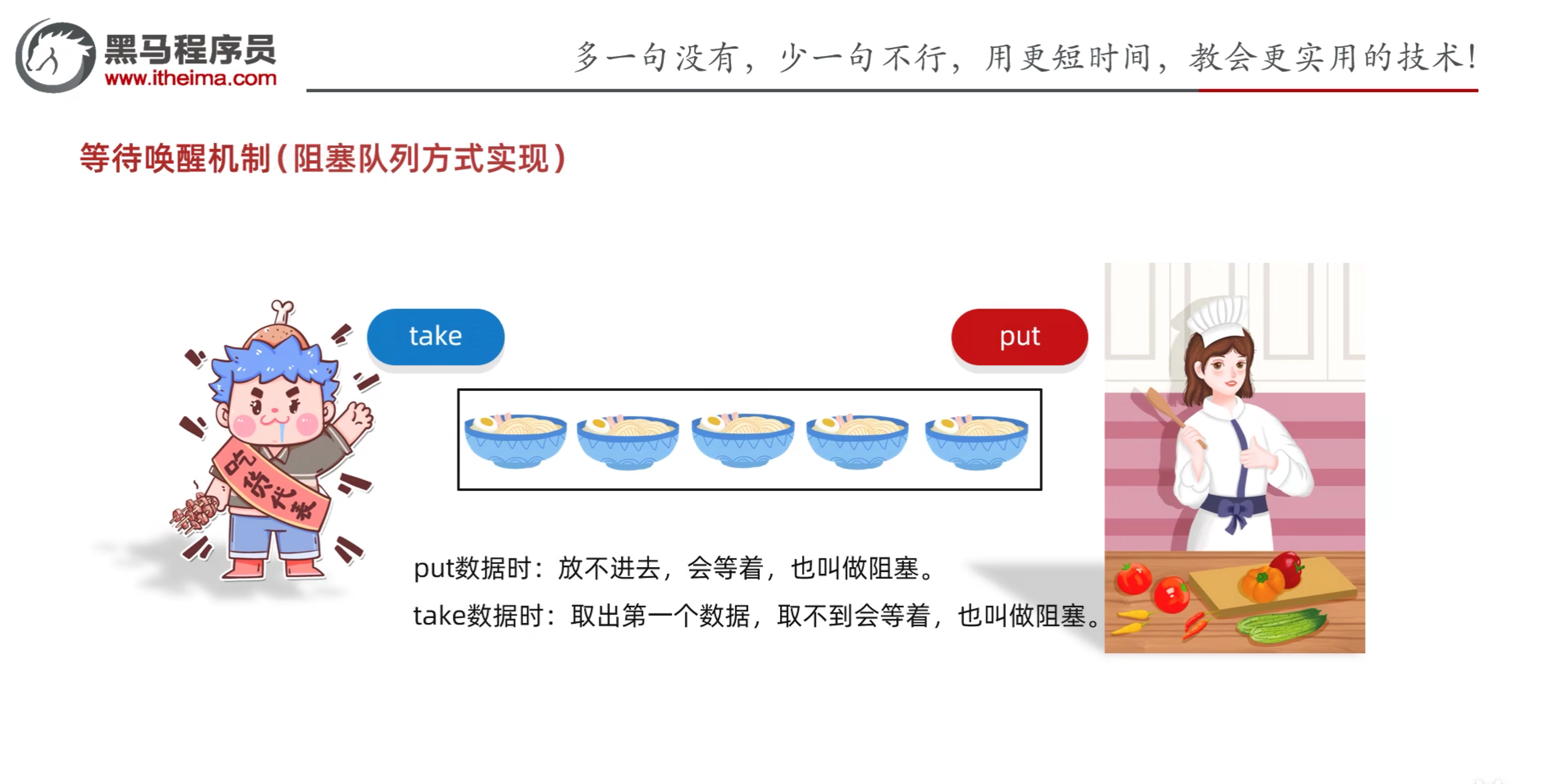 1 2 3 4 5 6 7 8 9 10 11 12 13 14 15 16 17 18 19 20 21 22 23 import java.util.concurrent.ArrayBlockingQueue;public class Cook extends Thread { ArrayBlockingQueue<String> queue; public Cook (ArrayBlockingQueue<String> queue) { this .queue = queue; } @Override public void run () { while (true ) { try { queue.put("面条" ); System.out.println("厨师放了一碗面条" ); } catch (InterruptedException e) { e.printStackTrace(); } } } }