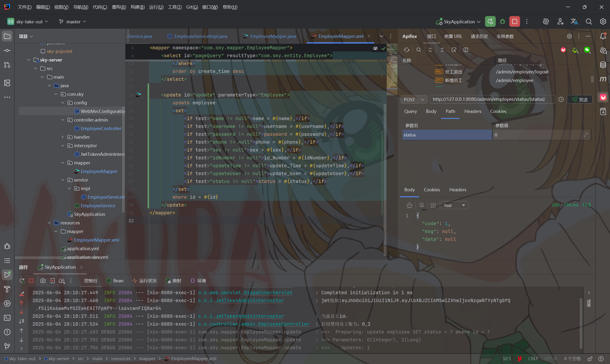 - Mapper中使用xml文件进行动态SQL拼接,这样不仅可以用来更新status,还可以更新其他属性