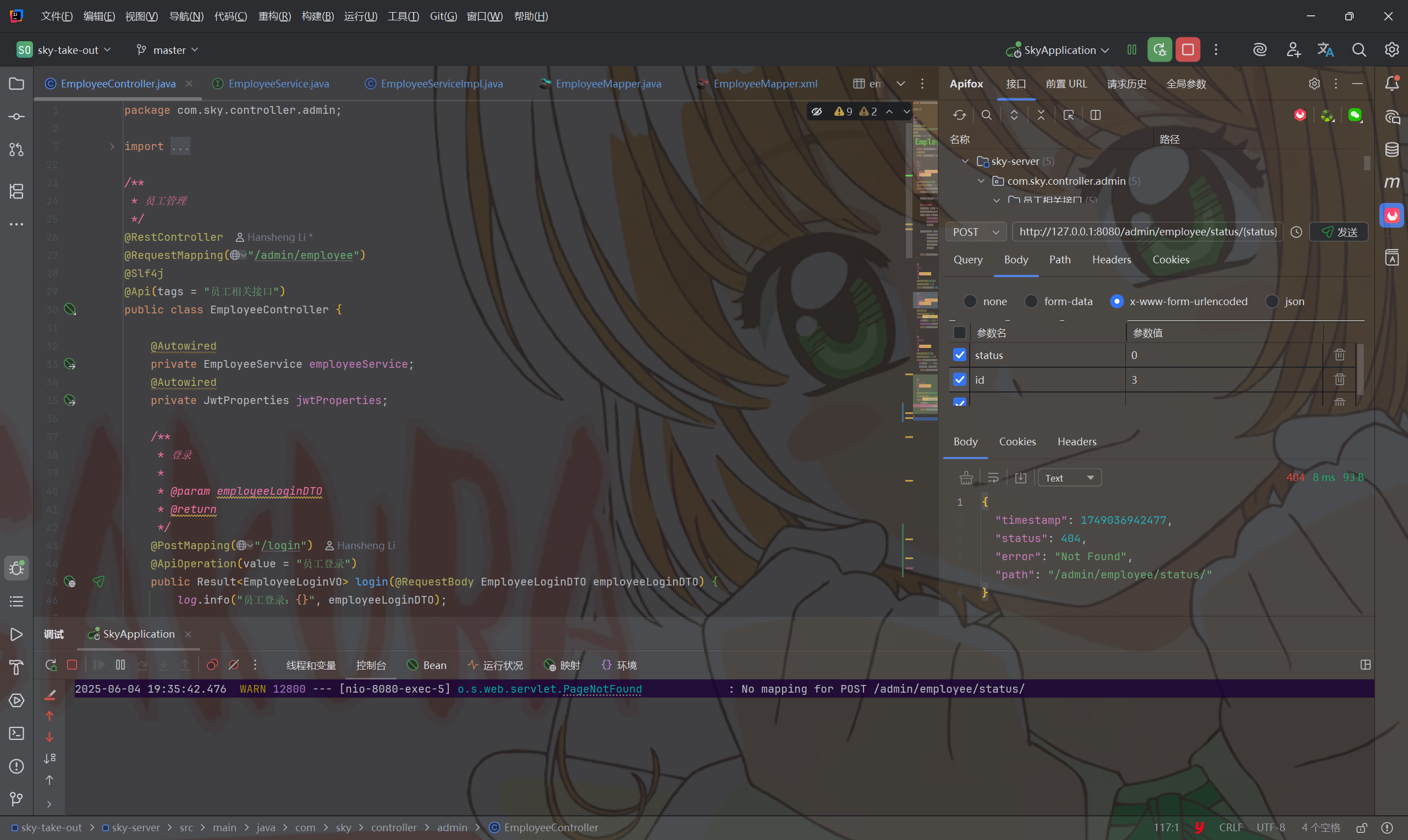 - 原因是使用Apifox测试时,路径参数需要在Path中传递,不能在body中传递