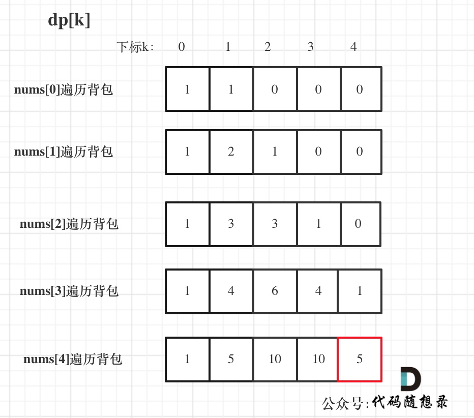 dp[j]代表填满j(包括j)这么大容积的包,有dp[j]种方法 -