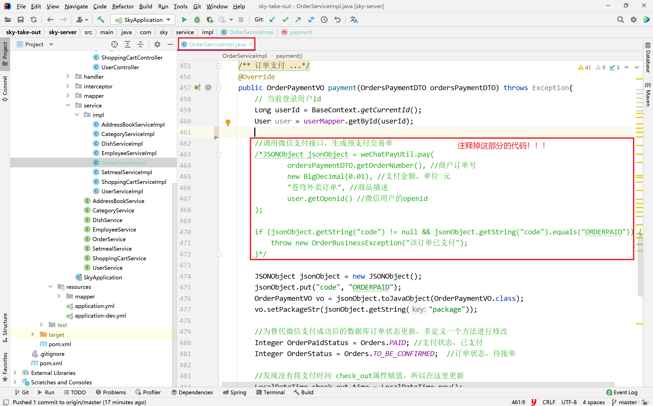 - 参考帖子:苍穹外卖跳过微信支付