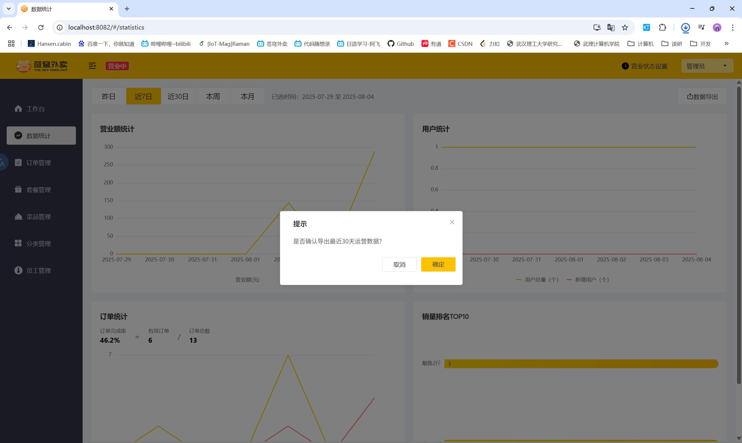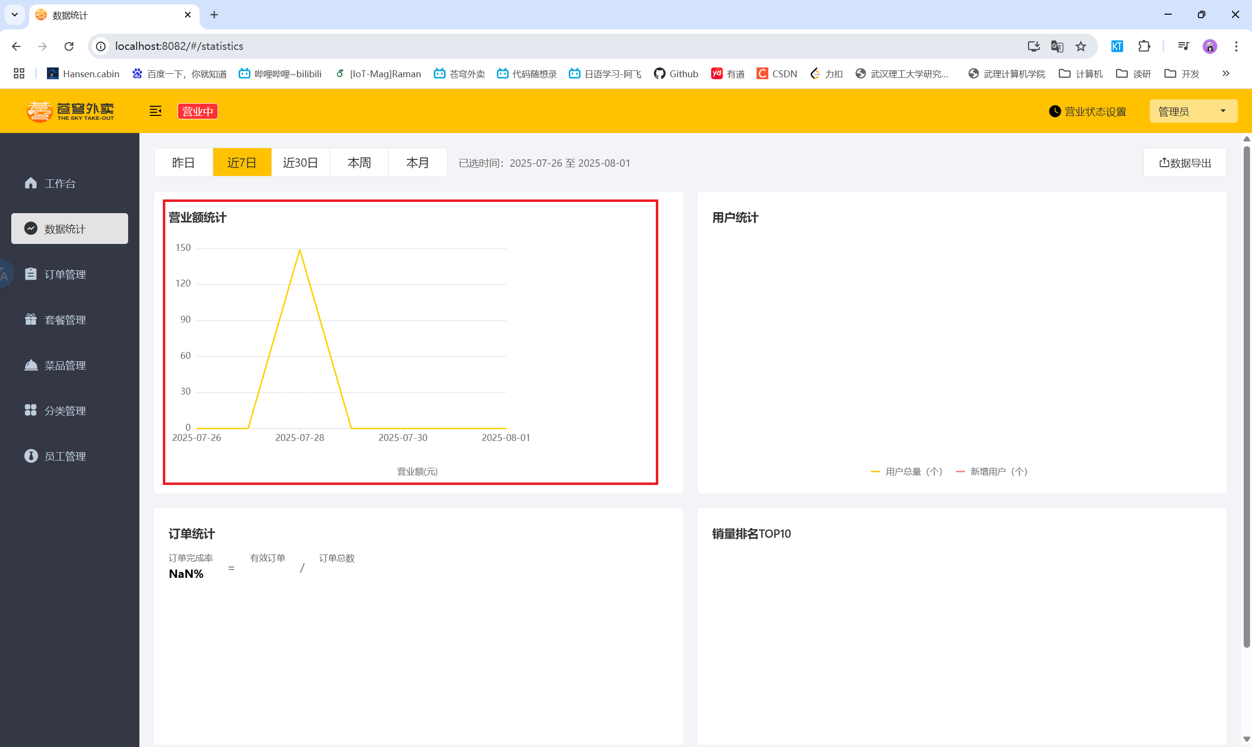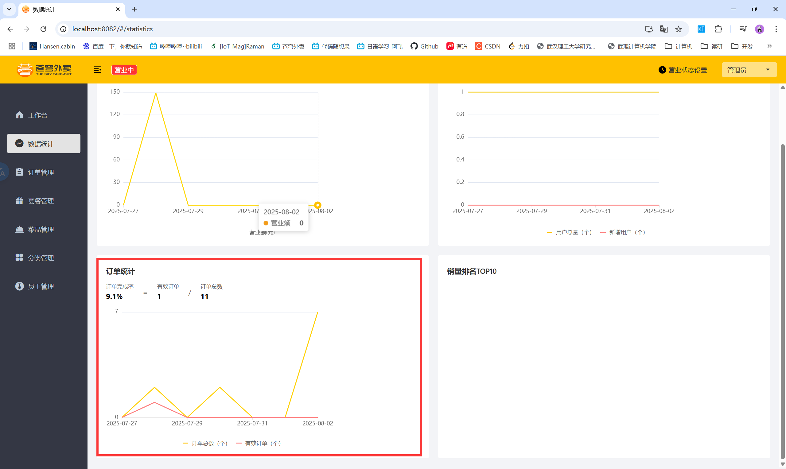 Integer orderCount = getOrderCount(beginTime, endTime, null); orderCountList.add(orderCount); Integer validOrderCount = getOrderCount(beginTime, endTime, Orders.COMPLETED); validOrderCountList.add(validOrderCount); }