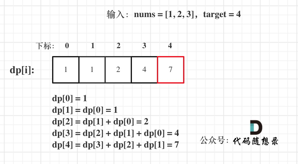dp[i] += dp[i - nums[j]] -