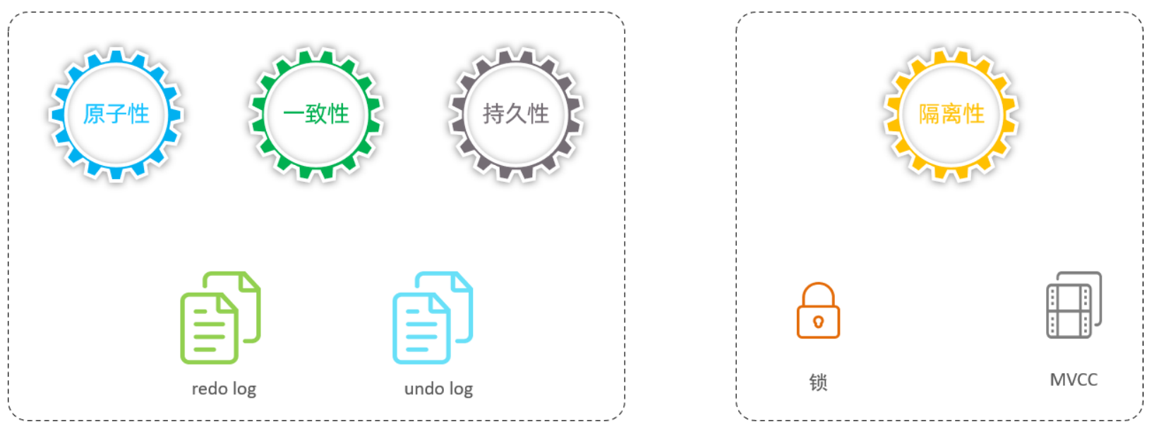 - InnoDB引擎, 支持事务, 而MyISAM不支持。
