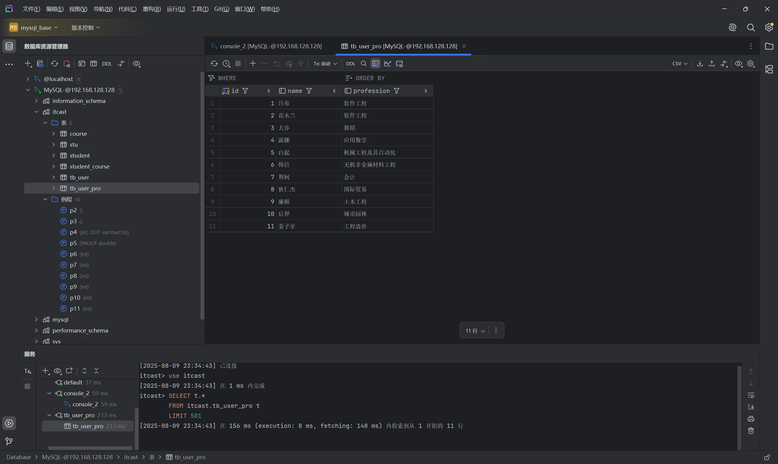 - information_schema:提供了访问数据库元数据的各种表和视图,包含数据库、表、字段类型及访问权限等。
