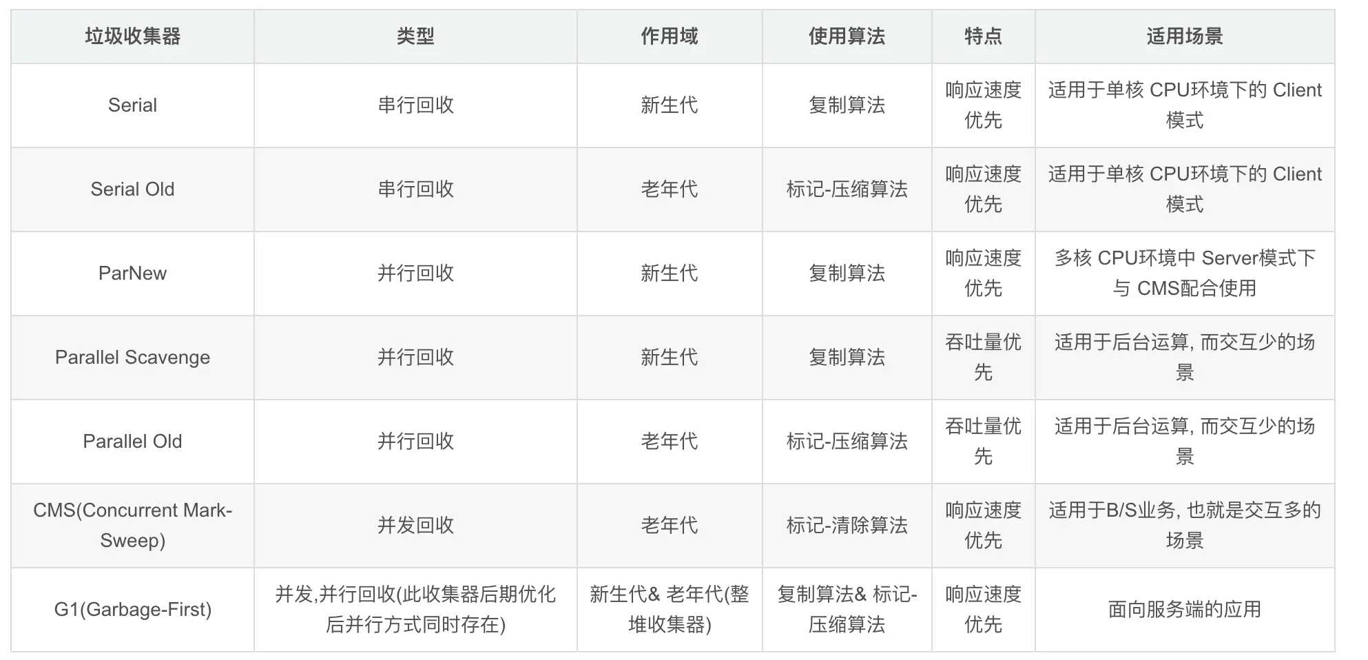 - Serial收集器(复制算法):新生代单线程收集器,标记和清理都是单线程,优点是简单高效;
